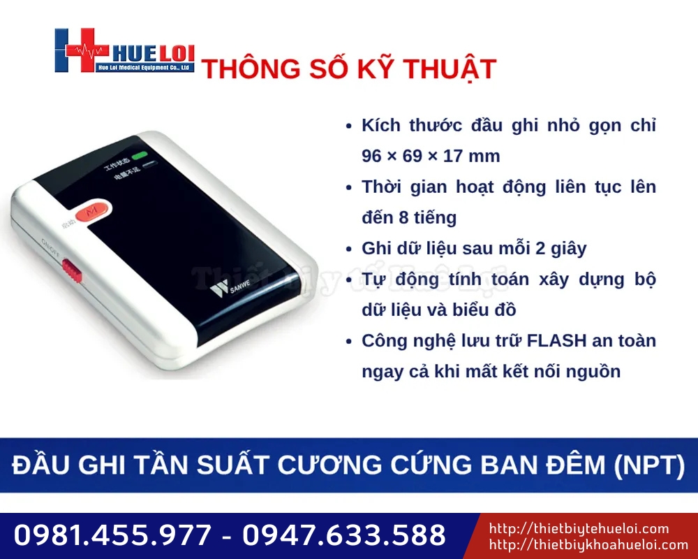 Với thiết kế bộ ghi NPT nhỏ gọn, dễ mang, tạo sự thoải mái, đảm bảo duy trì giấc ngủ sinh lý tự nhiên, giúp ghi nhận kết quả chính xác nhất với tình trạng bệnh thực tế. Hạn chế mất thông tin với với công nghệ lưu trữ FLASH, lưu trữ và truyền tín hiệu nhanh, ngay cả khi ngắt nguồn; cùng với đèn chỉ báo pin yếu, tránh kết quả không hợp lệ do lỗi pin.